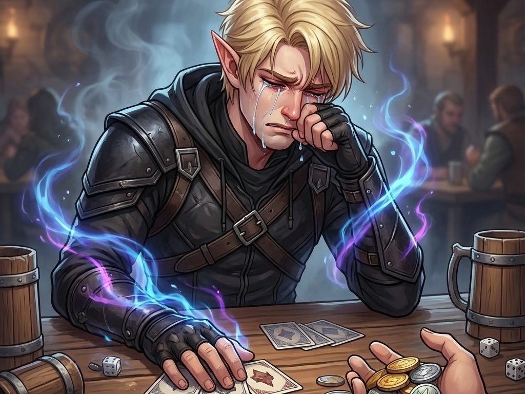 Im Steinhügel klirrten Münzen und Würfel, doch das Glück verließ Kael – Silber ging verloren, und die Gruppe suchte schließlich im Gasthaus Schutz für die Nacht.