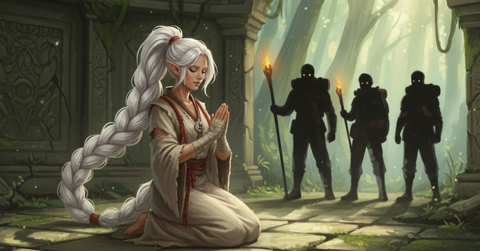 Vom Schicksal geleitet wandte sich die Gruppe dem Schrein des Glücks zu, in der Hoffnung, dass Tymoras Lächeln sie auf ihren kommenden Wegen begleiten möge.